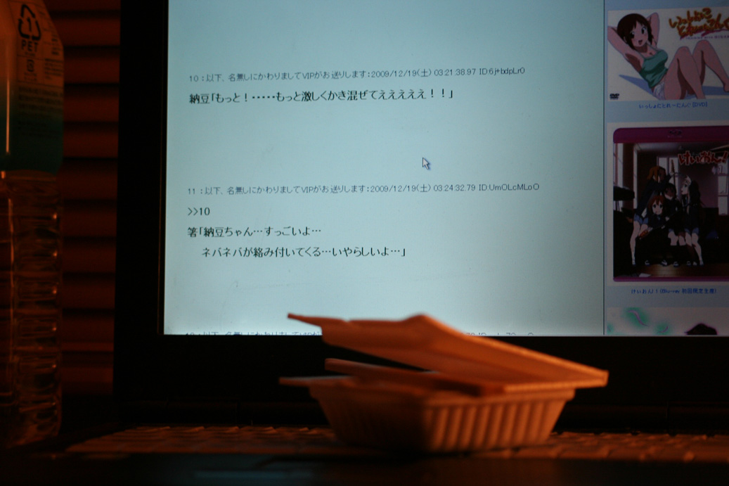 自分の部屋行って、パソコンでコピペブログ(笑)眺めながらパカっと納豆の蓋を開けて・・・